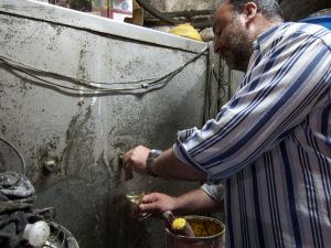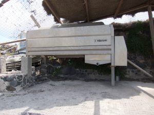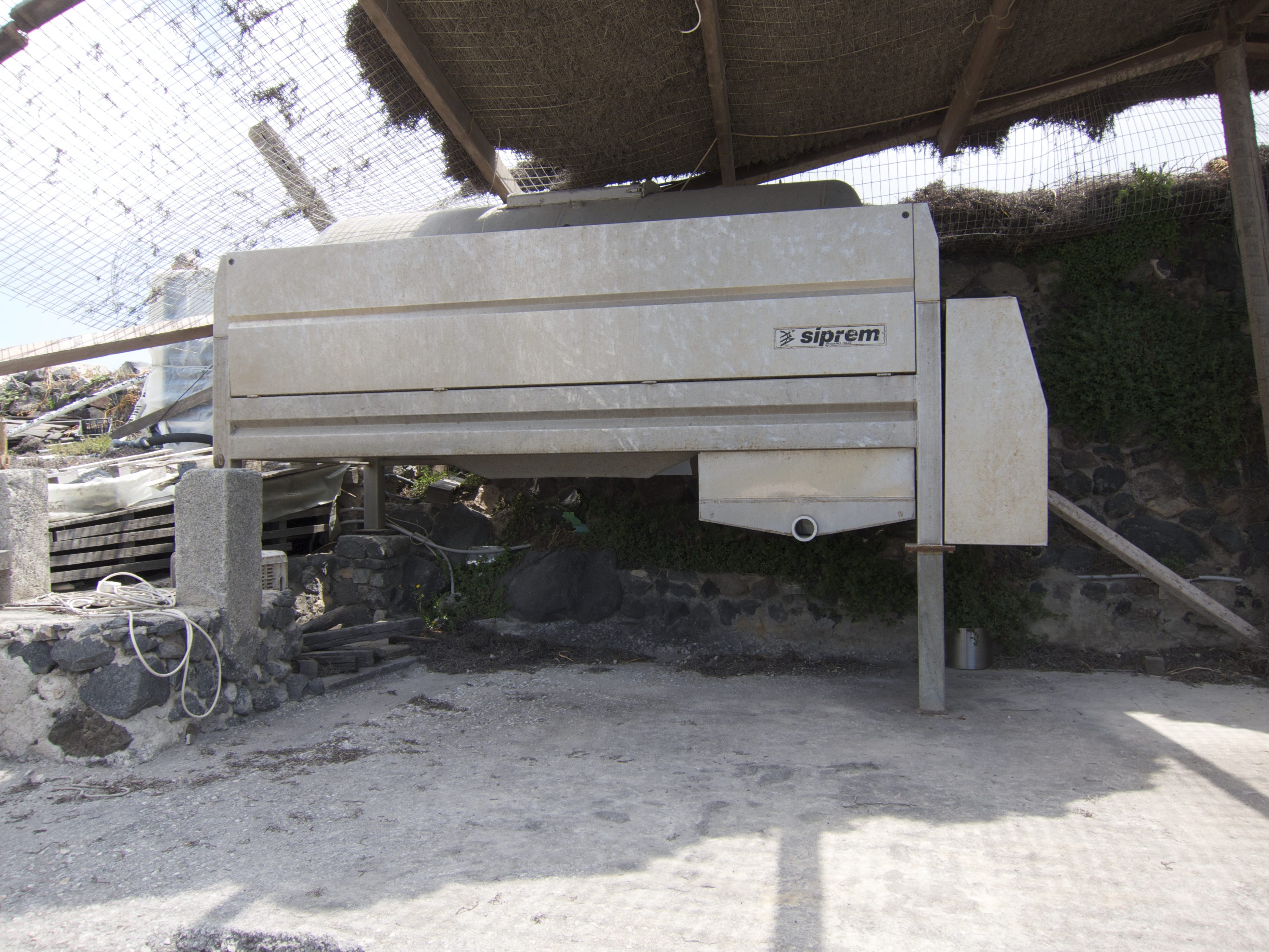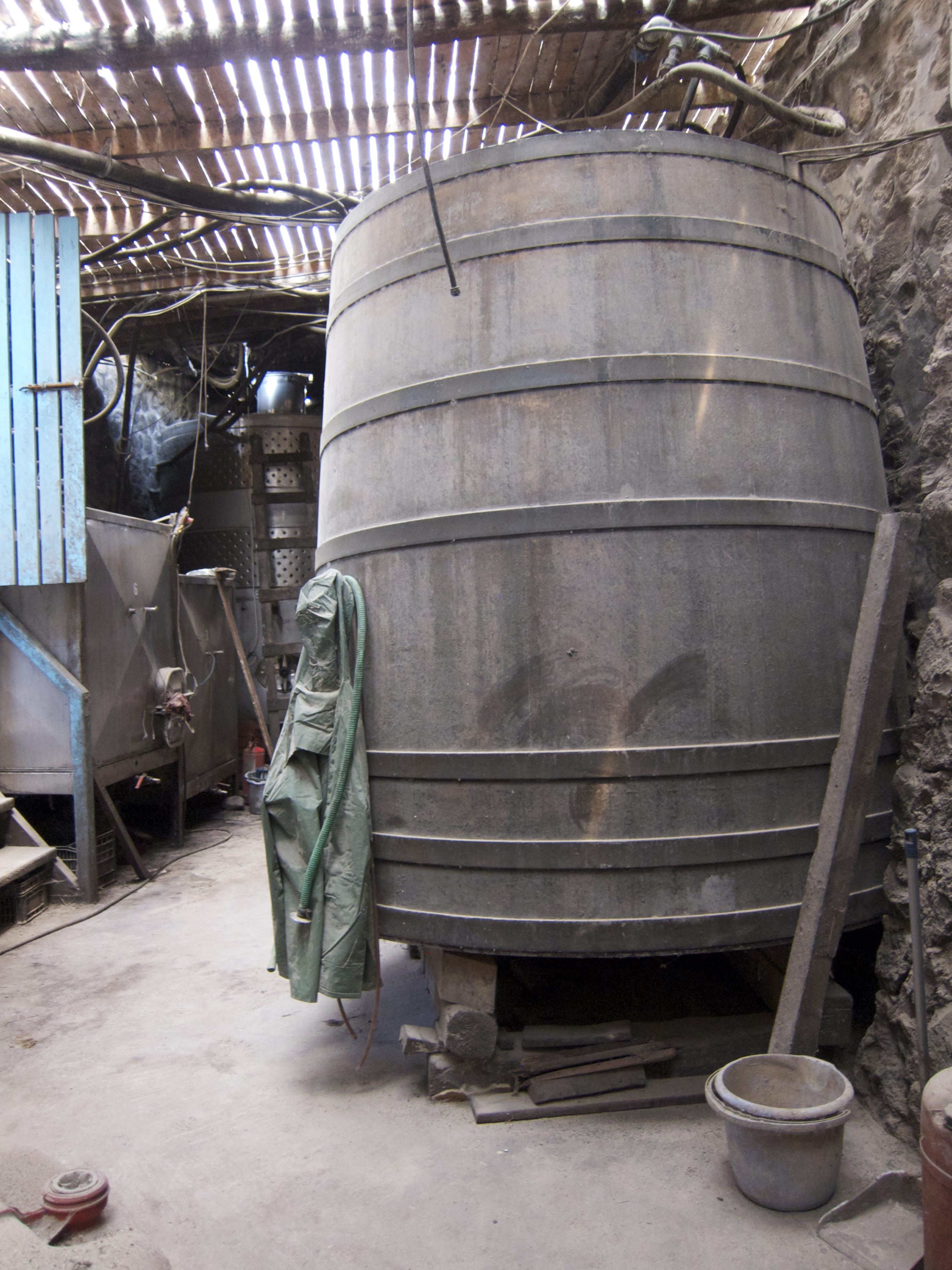 The Hatzidakis winery was a trip – a truly authentic experience of a winemaker, passionate about his wine and not about presentation. We walked from our hotel in search of this winery, only to find a run down trailer sitting on a small field of vines with what looked like a lot of old, disused farm equipment. Upon closer inspection we discovered the grape press and knew that this was indeed a winery. After milling around for a while trying to knock on doors in the obviously abandoned trailer, a car pulled up. We were greeted by a man who spoke little English (and we embarrassingly knew nothing in Greek so muddled through a series of hand gestures to indicate we wanted to try his wines). After a bit of confusion he obliged by handing us two stained glasses and escorting us through the farm door, down a dank dark cellar and through another door into the storage room. The pictures show the story better than my words – but at this stage I was pretty excited. We were able to try three of his wines straight from the barrels. The main grape on the island is Assyrtiko so I was not surprised that this was his main production. However, he did have an awesome 100% Aidani (generally used for blending with Assyrtiko) that I’ve given notes on below – by far the best wine I tried on the island. We walked away carrying bottles of his wine with big smiles on our faces.