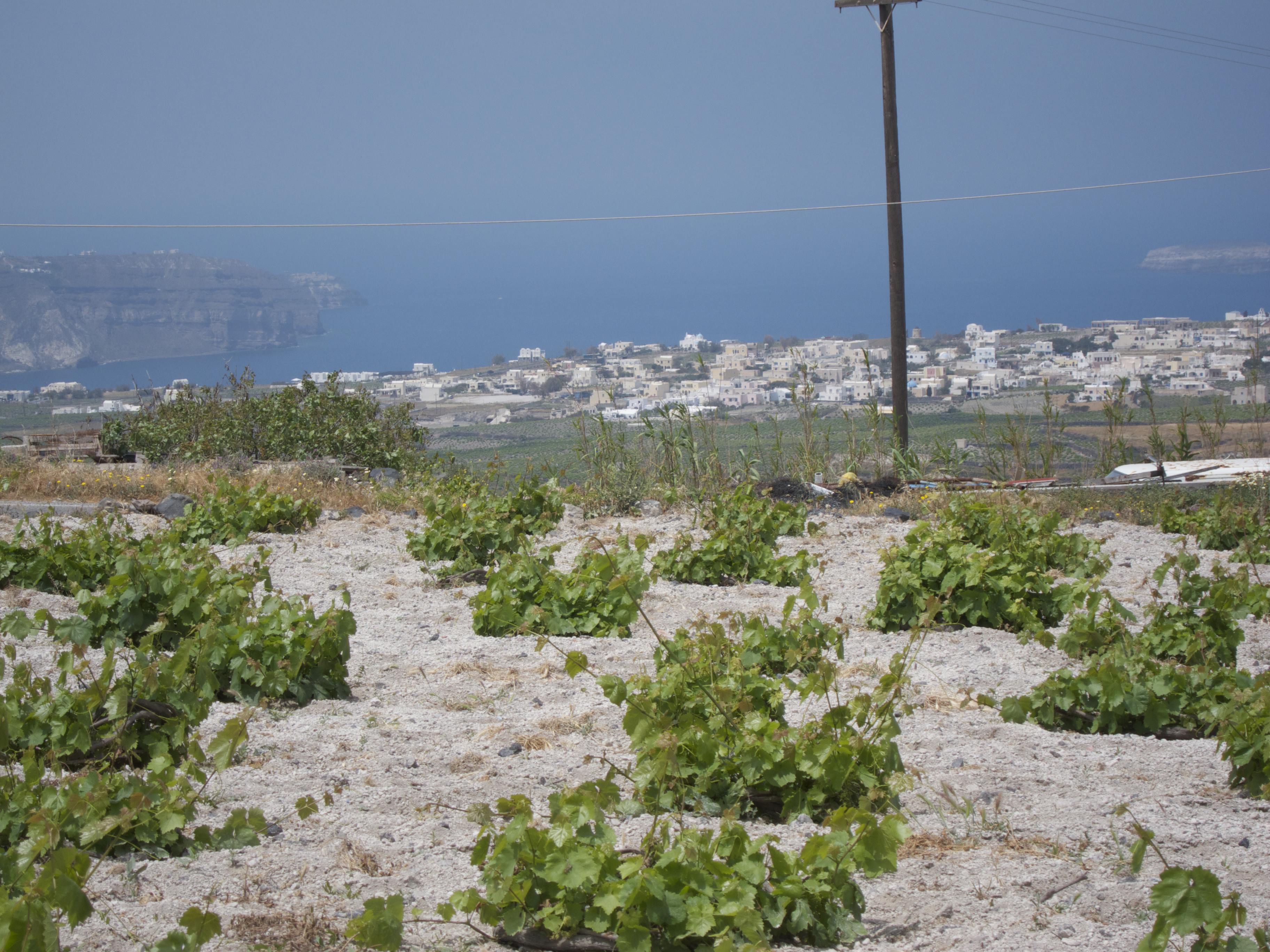 I’m just returning from 6 lovely days on the beautiful island of Santorini. For those of you that have been before, we stayed in Pyrgos which is away from the major tourist areas of Fira and Ia. Major bonus was that, without planning it, we ended up right in the middle of fields of vines! Not hard to do given just how much of the island is covered with these little bush trained vines.